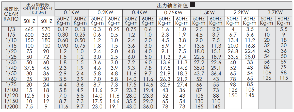 مشخصات N و مقادیر مرجع عملکرد یا موتور کاهنده دنده